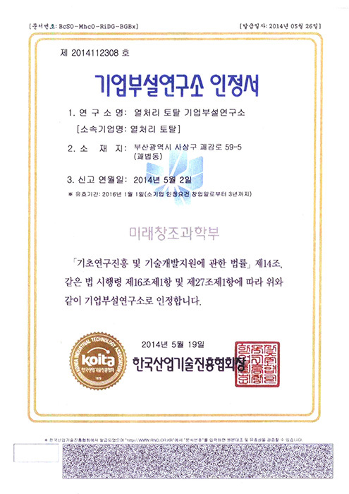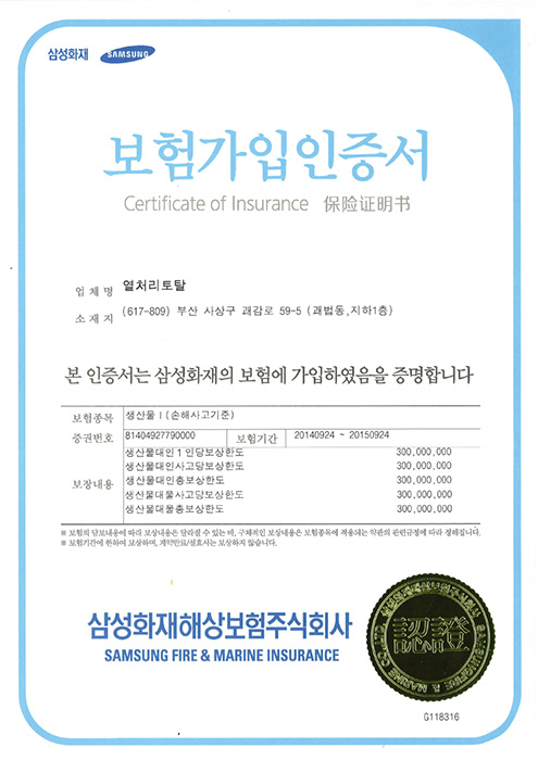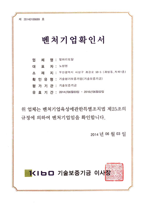 현재 페이지 위치 : Home > 사업소개 > 인증서